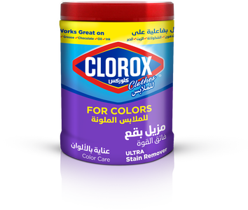 "كلوركس للملابس الملونة يزيل البقع و يزهي الألوان" -